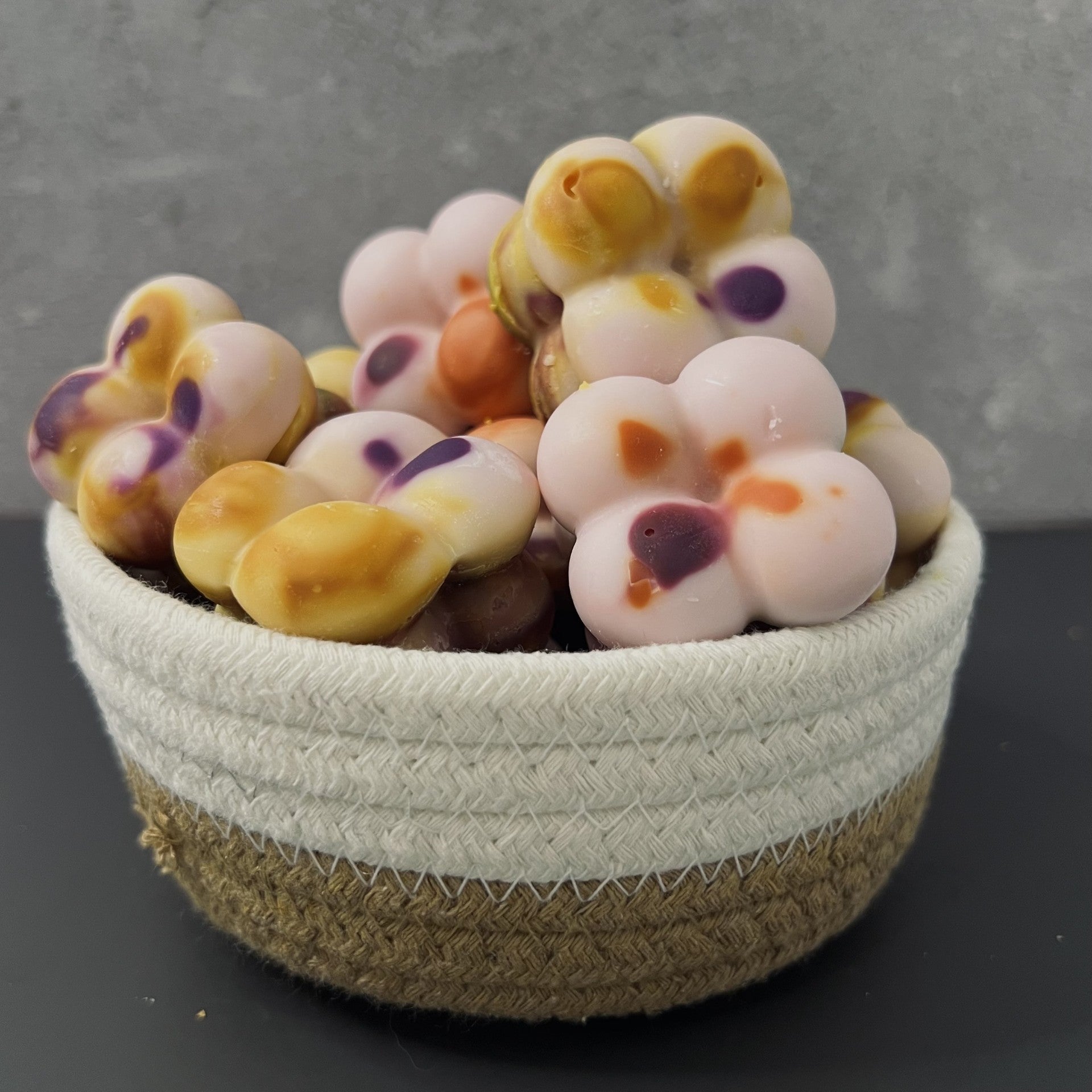 Our Deluxe Wax Melts are hand-poured in small batches and finished with marbled colour patterns — no two are ever alike. Made with natural soy wax and safe, non-toxic dyes, they offer a luxurious scent experience for larger warmers.