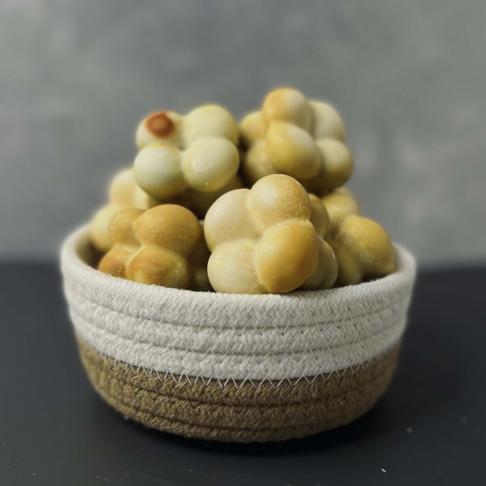 Hand-poured from 100% natural soy wax and coloured with non-toxic vegetable-based dyes. Small colour and texture variations are part of their handmade charm.